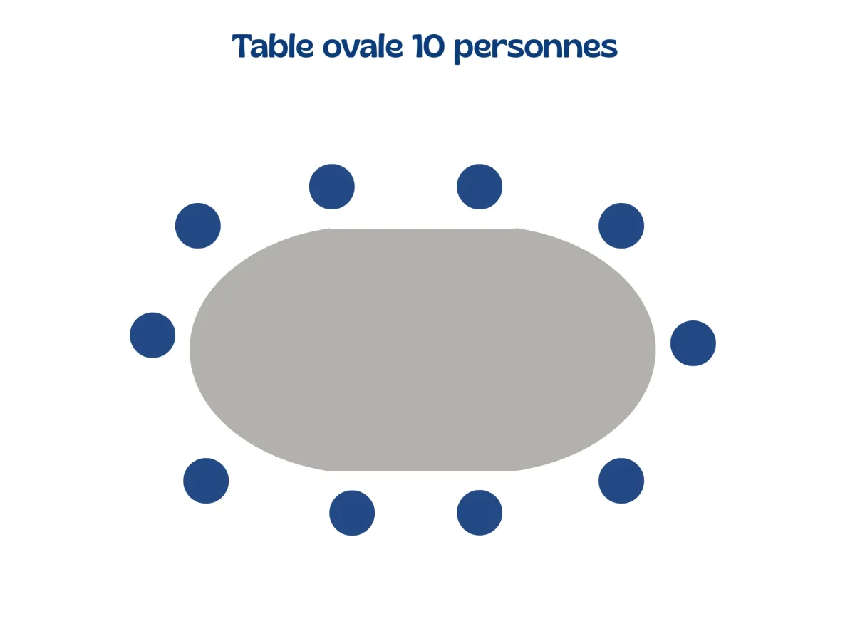 Sa forme ovale favorise une circulation fluide et une ambiance conviviale où chacun trouve sa place.